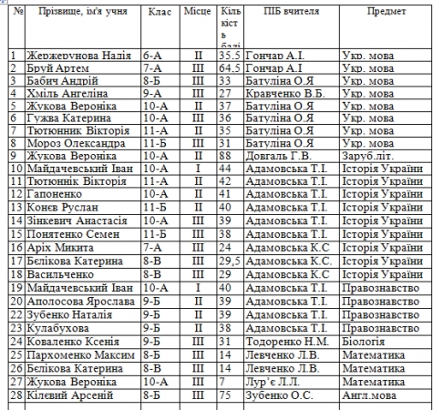 В період з 10.10.2017 - 20.10.2017 в КЗ«ЗСЗШІСП»ЗОР проходив 1 (шкільний) тур Всеукраїнських учнівських олімпіад з 11 предметів: української мови, англійської мови, математики, фізики, хімії, інформатики, біології , географії, історії , зарубіжної літератури та правознавства. За активну участь та досягнуті результати в I (шкільному) турі Всеукраїнських олімпіад з базових дисциплін у 2017/2018 н.р. учнів закладу нагороджено грамотами.