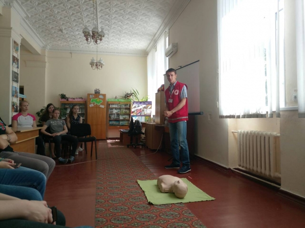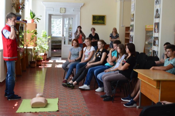Чергова зустріч з волонтерами із Запорізької обласної організації Товариства Червоного Хреста України, організована обласною бібліотекою для дітей "Юний читач" Запорізької обласної ради для вихованців обласної школи-інтернату спортивного профілю пройшла у вигляді майстер-класу з оволодіння навичками надання потерпілим першої медичної допомоги. Старшокласники не тільки отримали цінні поради щодо порядку дій при наданні першої допомоги, а й змогли попрактикуватись на муляжі "Васі".