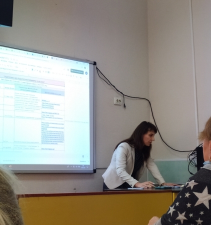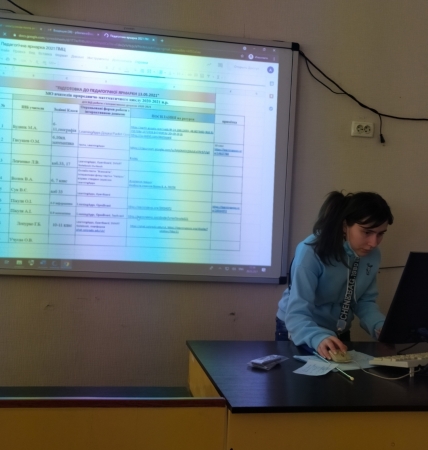 З доповідями та презентаціями виступали керівники методичних обєднань керівники методичних об'єднань закладу Будник М.А., Зубенко О.С., які підвели підсумки роботи методичних об'єднань у 2029/2021 навчальному році.