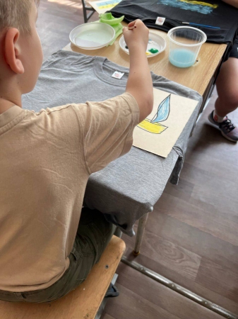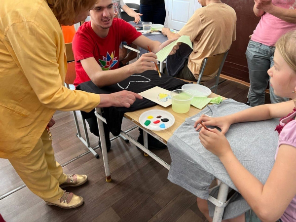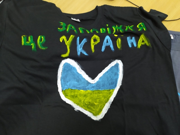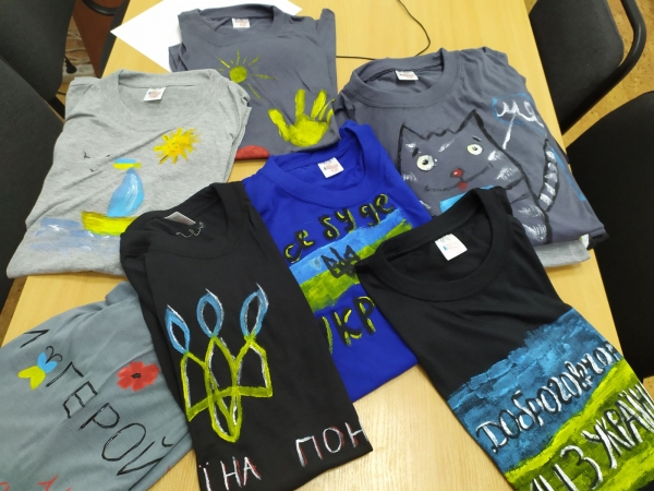 Саме це зробили дітки-переселенці та наші вихованці,вони зобразили патріотичні малюнки на футболках, які потім передадуть до лікарні - для поранених бійців.