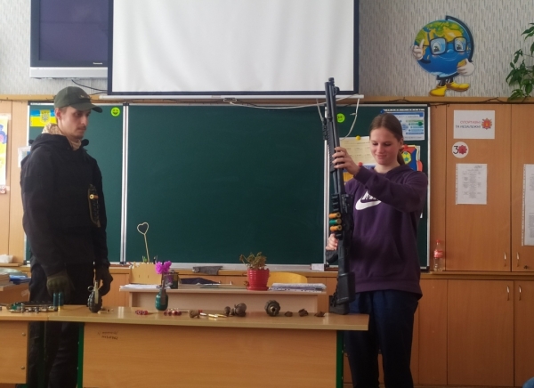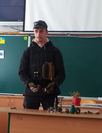 Тому, у спортивному ліцею була організована зустріч із поліцейським. який пояснив види різної зброї ,яка може залишитися після воєнних дій та зосередив на діях, яких потрібно дотримуватися для збереження життя і здоров'я себе і своїм рідним.